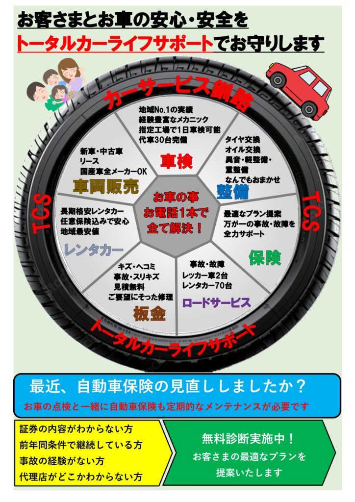 「困った」を、一本の電話で。 車検・整備・保険・レンタカー・ロードサービスまで、まるごとお任せ